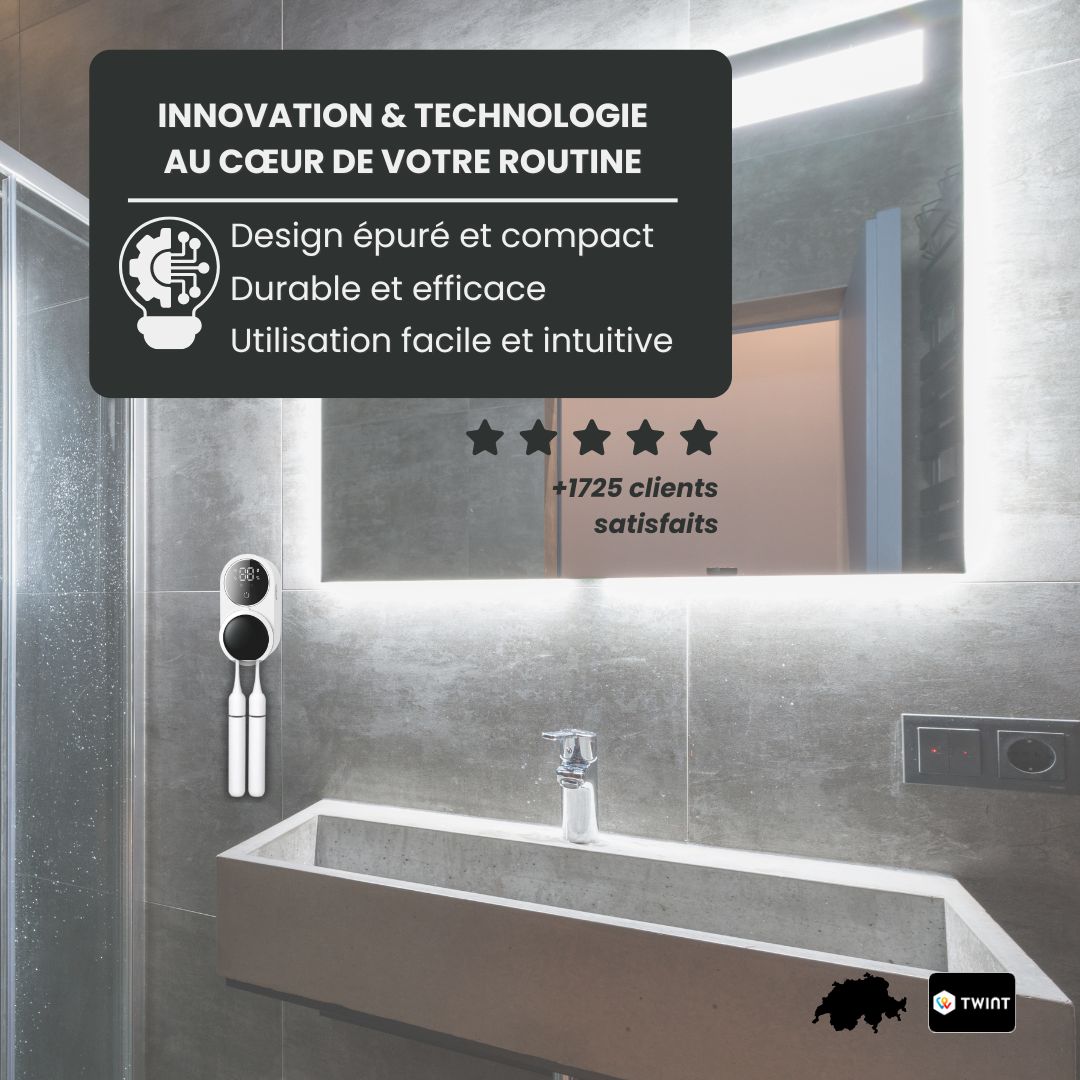 Fixation murale sans perçage, compatible avec toutes les brosses à dents et entièrement automatisé — une hygiène sans effort !